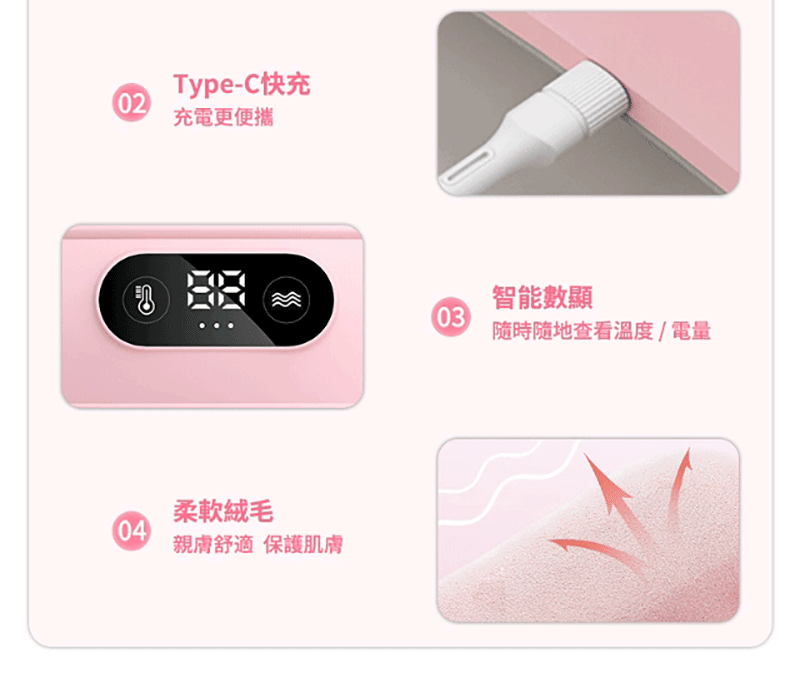 ● 恆溫熱敷舒緩經痛:40–65°C 智慧恆溫加熱,有效舒緩腹部不適、驅寒保暖。