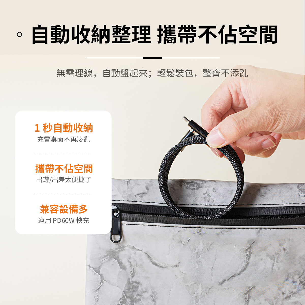 • 防纏繞設計: 線體可自動回彈吸附成圈,隨手放置也能保持整潔