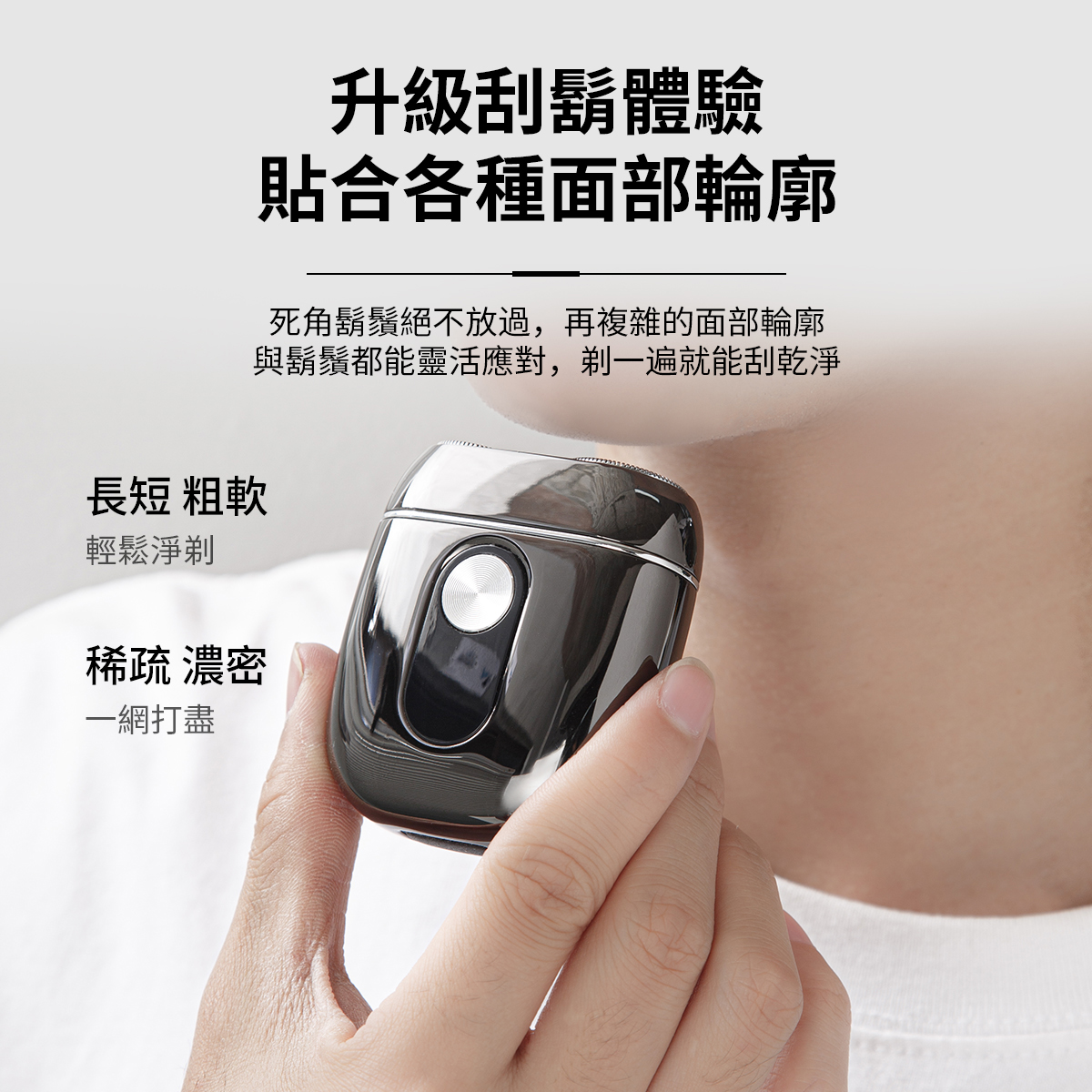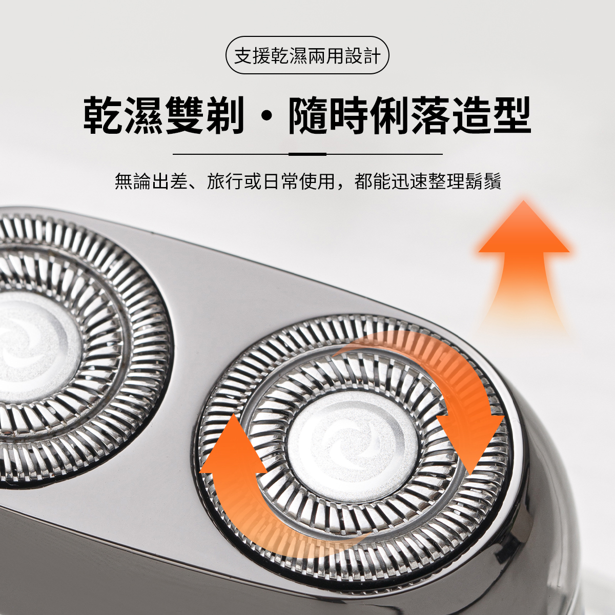• 乾濕雙剃・隨時俐落造型 支援乾濕兩用設計,無論出差、旅行或日常使用,都能迅速整理鬍鬚。