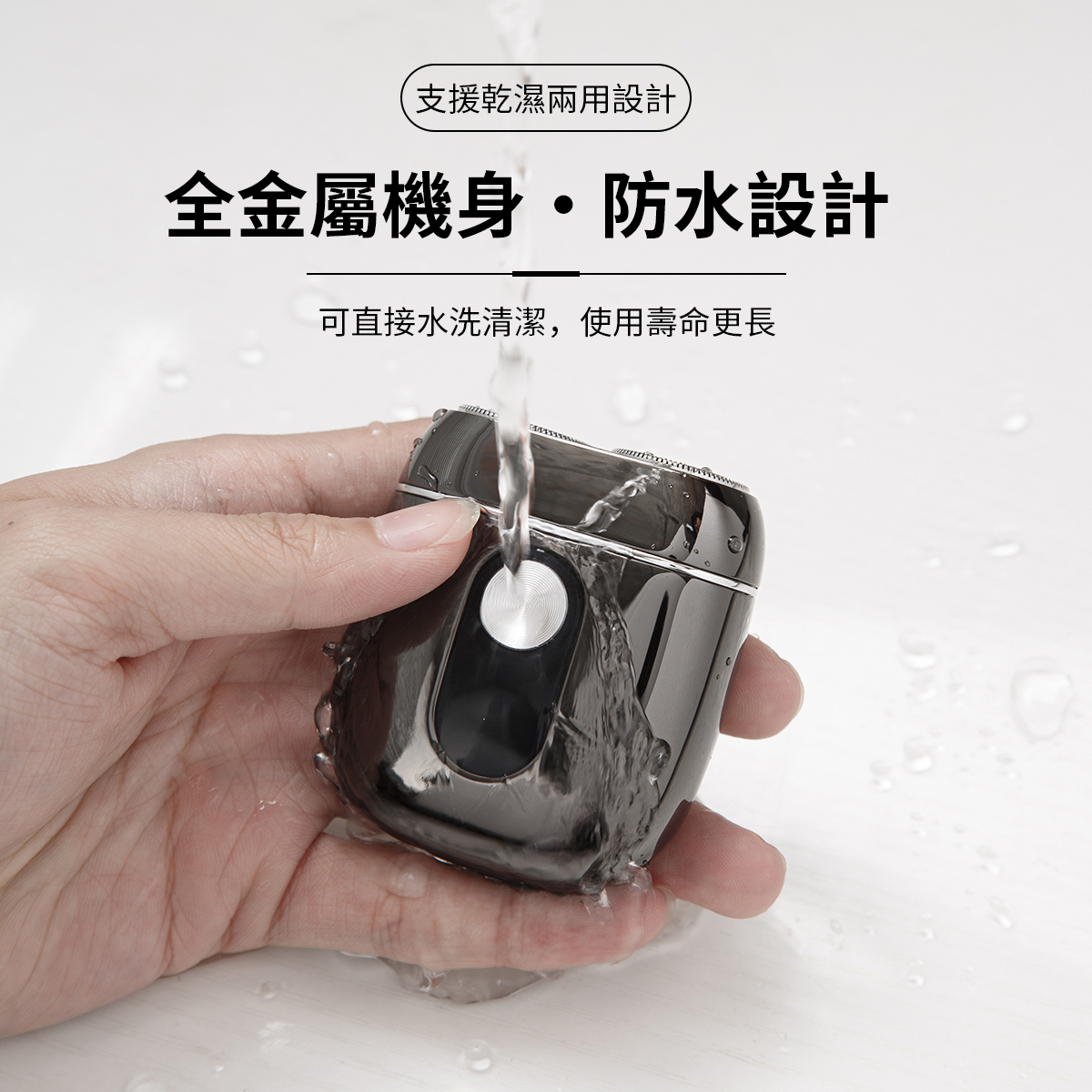 • 全金屬機身・防水設計 IPX7 全機防水,可直接水洗清潔,使用壽命更長。