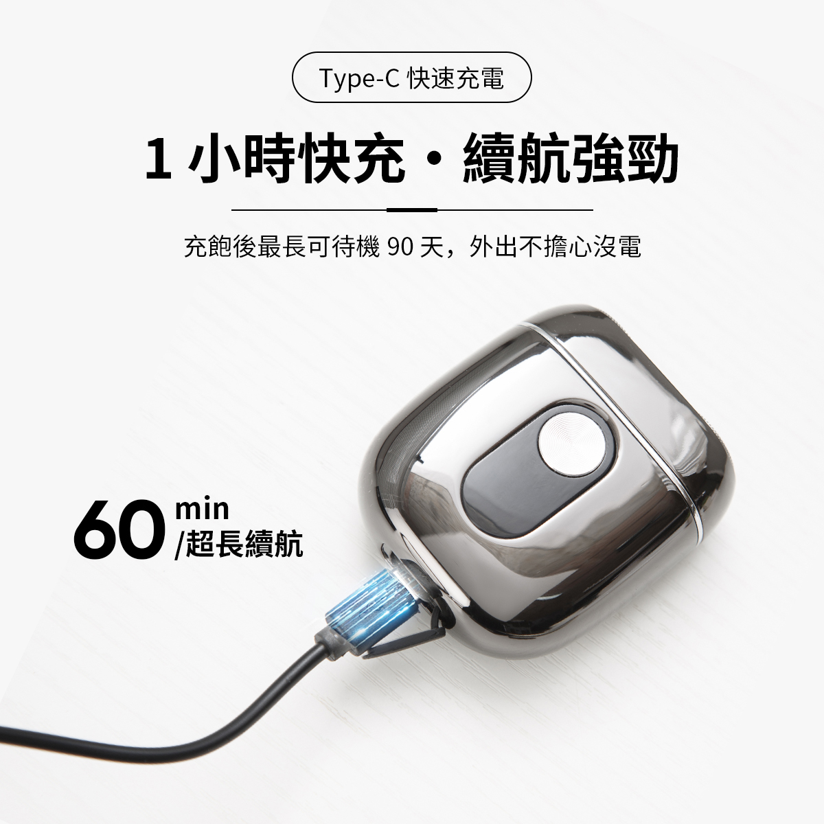 1 小時快充,待機長達 90 天,旅行、辦公都能隨時保持俐落造型。