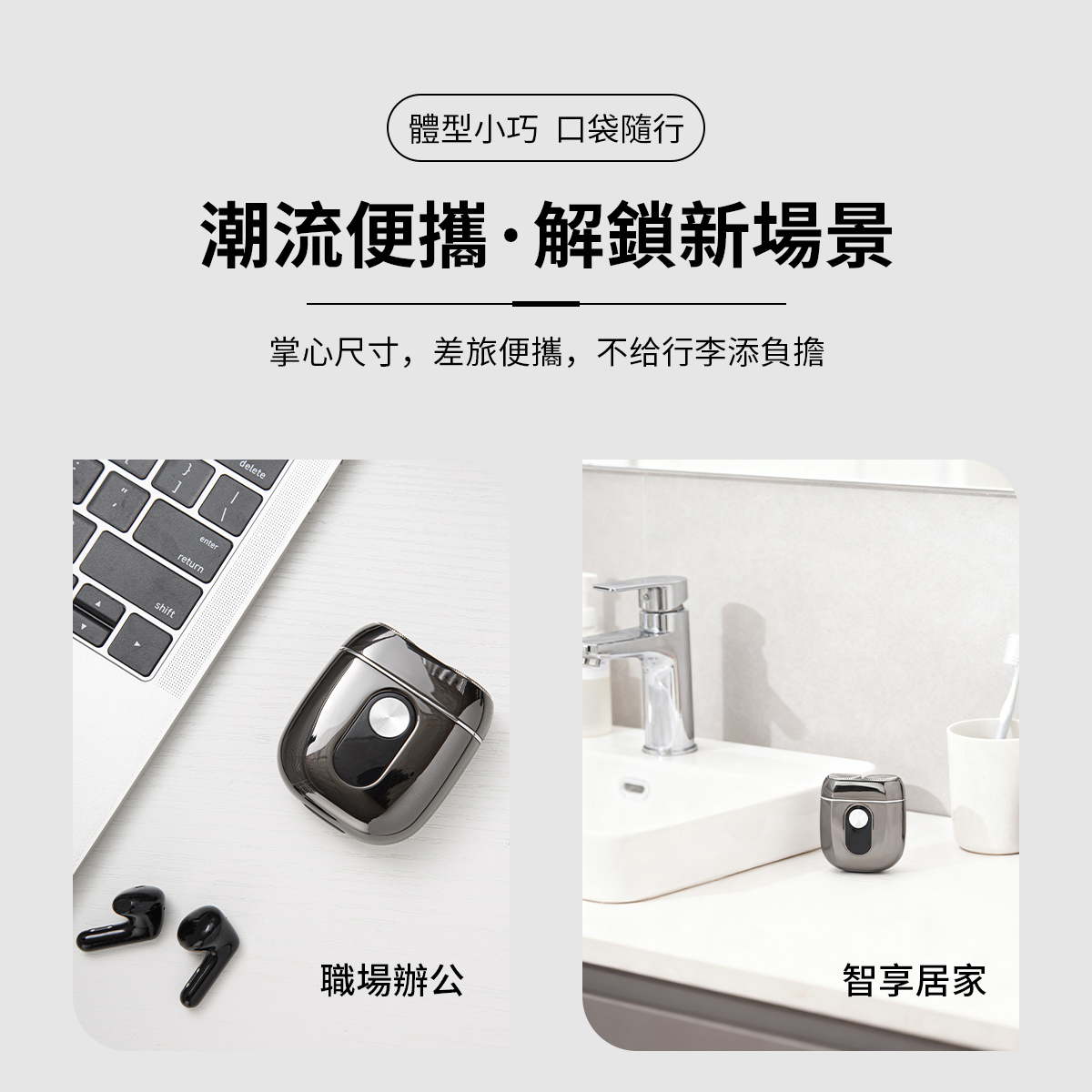 • 全新升級迷你電動刮鬍刀 ✨ 掌心大小、雞蛋般重量,時尚輕便,輕鬆放入口袋隨身攜帶。